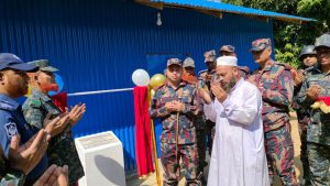 জরাজীর্ণ উলুছড়ি আনসার ক্যাম্প নতুন করে নির্মাণ করেছে মারিশ্যা জোন প্রকাশিত: ৩:৫২ অপরাহ্ণ, অক্টোবর ৩০, ২০২৫ পার্বত্য অঞ্চলে আইন-শৃঙ্খলা ও শান্তি বজায় রাখতে পরিচালিত “অপারেশন উত্তোরন”এর কার্যক্রমের অংশ হিসেবে বাঘাইছড়ির উলুছড়ি আনসার ক্যাম্পের জরাজীর্ণ আবাসনসমূহ নতুন করে সংস্কার করেছে মারিশ্যা জোন (২৭ বিজিবি)। ২৪ পদাতিক ডিভিশনের জিওসির নির্দেশনা এবং সেনা রিজিয়ন কমান্ডার, খাগড়াছড়ির দিকনির্দেশনা ও বরাদ্দকৃত অর্থে ক্যাম্পটির পুরোনো ভবনসমূহ সংস্কার ও পুনর্নির্মাণ করা হয়। বৃহস্পতিবার (৩০ অক্টোবর) সকালে নবসংস্কারকৃত উলুছড়ি আনসার ক্যাম্পের উদ্বোধন করেন মারিশ্যা জোনের জোন কমান্ডার লে. কর্নেল জাহিদুল ইসলাম জাহিদ, পিএসসি। উদ্বোধনী অনুষ্ঠানে উপস্থিত ছিলেন মারিশ্যা জোনের সুবেদার মেজর, উলুছড়ি ক্যাম্প কমান্ডার, আনসার ও পুলিশ সদস্যসহ স্থানীয় প্রিন্ট ও ইলেকট্রনিক মিডিয়ার সাংবাদিকবৃন্দ। নব নির্মিত সৈনিক ব্যারাক উদ্বোধন শেষে জোন কমান্ডার লে. কর্নেল জাহিদুল ইসলাম জাহিদ বলেন, “জিওসি মহোদয়ের নির্দেশনা অনুযায়ী উলুছড়ি আনসার ক্যাম্পের সকল স্থাপনা সংস্কার করা হয়েছে। ভবিষ্যতেও মারিশ্যা জোনের আওতাধীন অন্যান্য পিছিয়ে থাকা ক্যাম্পগুলোকে আধুনিক ও বাসযোগ্য করে গড়ে তোলা হবে, যাতে প্রশাসনিক ও আভিযানিক কার্যক্রম আরও সুন্দরভাবে পরিচালনা করা যায়।” তিনি আরও বলেন, “উলুছড়ি আনসার ক্যাম্প এই অঞ্চলে শান্তি, সম্প্রীতি ও নিরাপত্তা বজায় রাখতে সেনাবাহিনী, বিজিবি ও পুলিশের সঙ্গে একত্রে গুরুত্বপূর্ণ ভূমিকা রাখবে।” SHARES প্রচ্ছদ বিষয়: