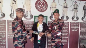 বিজিবির বাঘাইহাট ব্যাটালিয়নের মানবিক সহায়তা প্রদান প্রকাশিত: ১১:০২ অপরাহ্ণ, ডিসেম্বর ৮, ২০২৫ রাঙ্গামাটির বাঘাইছড়ি উপজেলার সাজেক ইউনিয়নের বাঘাইহাটে অসহায় ও সুবিধাবঞ্চিত পরিবারের পাশে দাঁড়িয়েছে বাঘাইহাট ব্যাটালিয়ন (৫৪ বিজিবি)। সোমবার (০৮ ডিসেম্বর) ব্যাটালিয়ন অধিনায়ক লেফটেন্যান্ট কর্নেল মোঃ মহিউদ্দিন ফারুকীর নির্দেশনায় সহকারী পরিচালক মোঃ আউয়াল হোসেন সাজেক ইউনিয়নের দুই জন দরিদ্র পরিবারে আর্থিক সহায়তা প্রদান করেন। জামপড়া এলাকার বিকাশ ত্রিপুরার স্ত্রীর চিকিৎসার জন্য প্রয়োজনীয় সহযোগিতা প্রদান করা হয়। পাশাপাশি বেটলিং পাড়ার নলেন ত্রিপুরাকেও মানবিক বিবেচনায় আর্থিক অনুদান দেওয়া হয়। বিজিবির পক্ষ থেকে জানানো হয়, স্থানীয় জনগণের কল্যাণ, মানবিক সহায়তা ও শান্তি–সম্প্রীতি রক্ষার লক্ষ্যে এ ধরনের কার্যক্রম ভবিষ্যতেও অব্যাহত থাকবে। SHARES সাজেক ইউনিয়ন বিষয়: